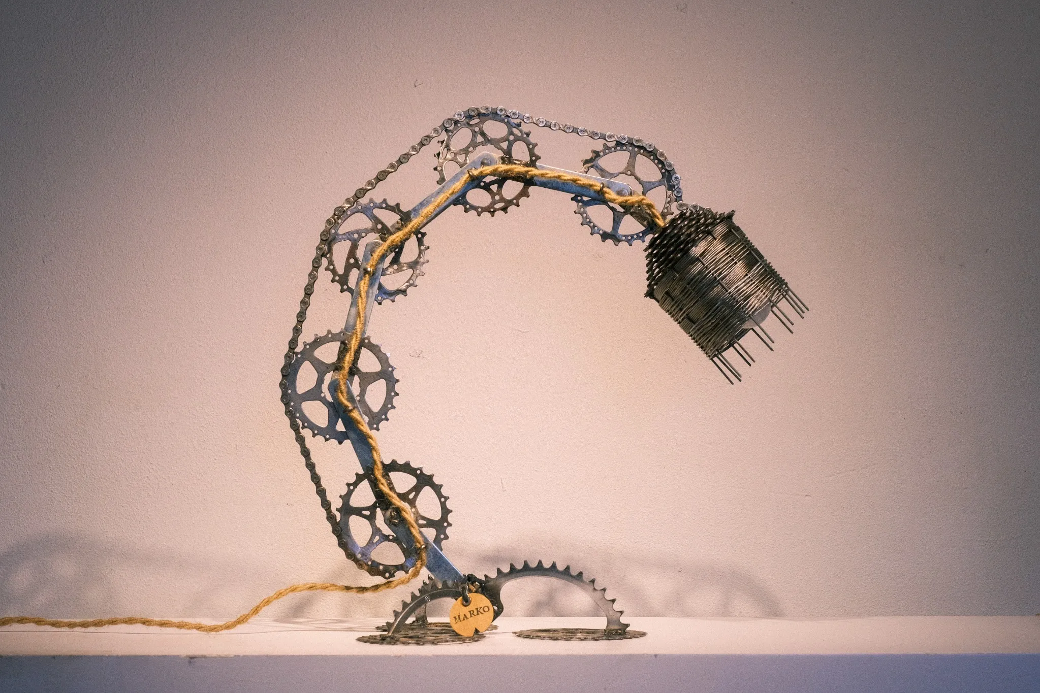 Exclusivement réalisée avec des pièces de vélos recyclées de l’atelier Poupoupidou situé à Nantes.